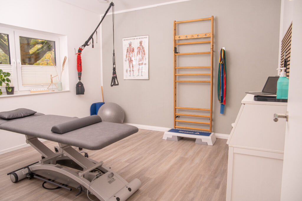 Unsere Praxis ist für Ihre persönlichen Bedürfnisse ausgestattet. Es stehen sowohl großzügige, helle Einzeltherapieräume zur Verfügung als auch ein Trainingsraum mit verschiedenen Klein- und Großgeräten.